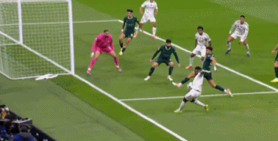 第7分钟,罗德里戈右路传中,维尼修斯后点抢射踢偏